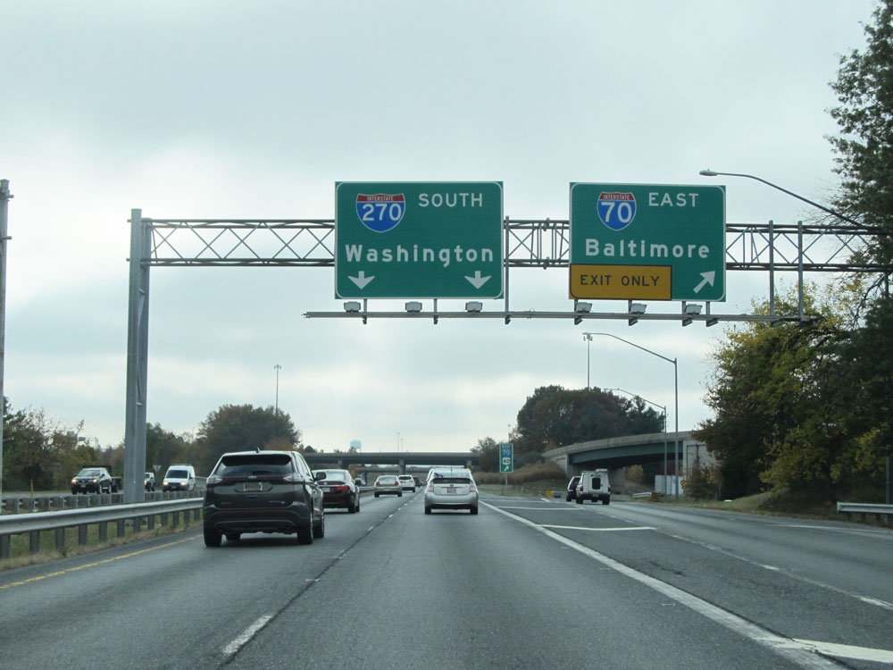 Interstate 270 in Maryland is a road that starts in Frederick, MD at Interstate 70 which is in Frederick County, and ends in Bethesda, MD at Interstate 495 which is in Montgomery County. It passes through lots of populated cities in Montgomery County including Germantown, Gaithersburg, and Rockville just to name a few. Near I-495, the Highway splits. One side going to I-495 north going toward Silver Spring and College Park, and the other going to I-495 east going toward Northern Virginia.